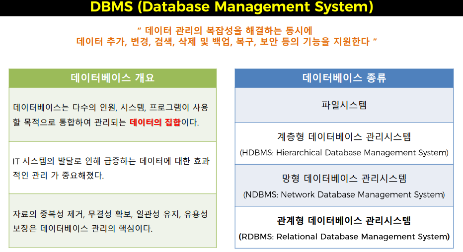o 관계형 데이터베이스: 구조를 정해 놓고 정보 저장. 가장 많이 사용.